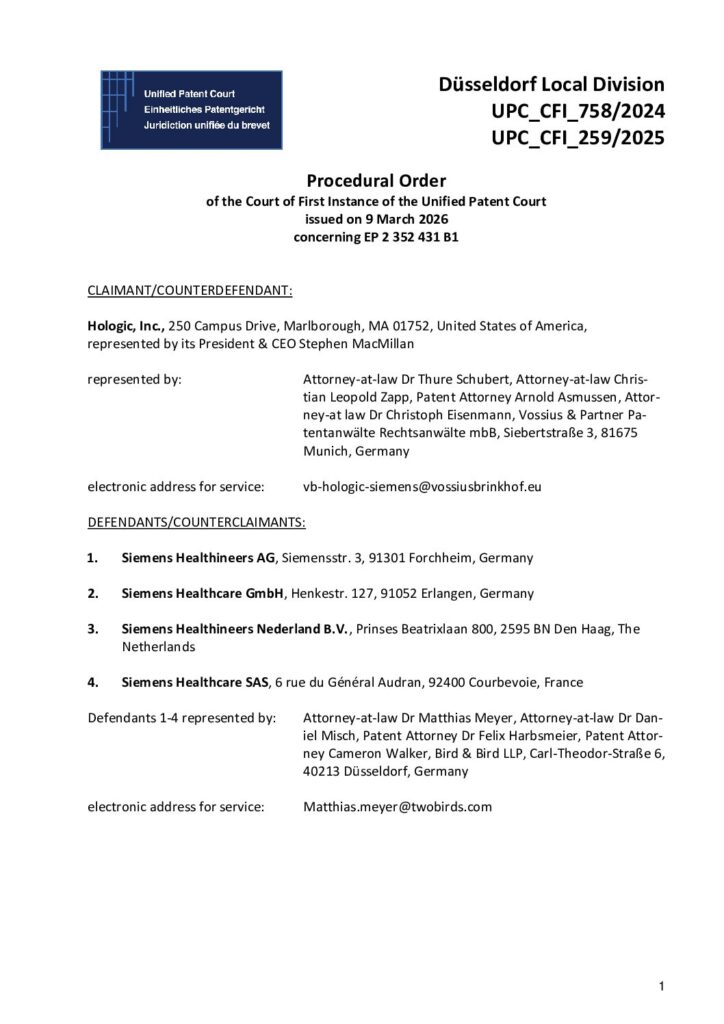 Defendants / Counterclaimants: Siemens Healthineers AG, Siemens Healthcare GmbH, Siemens Healthineers Nederland B.V., Siemens Healthcare SAS
